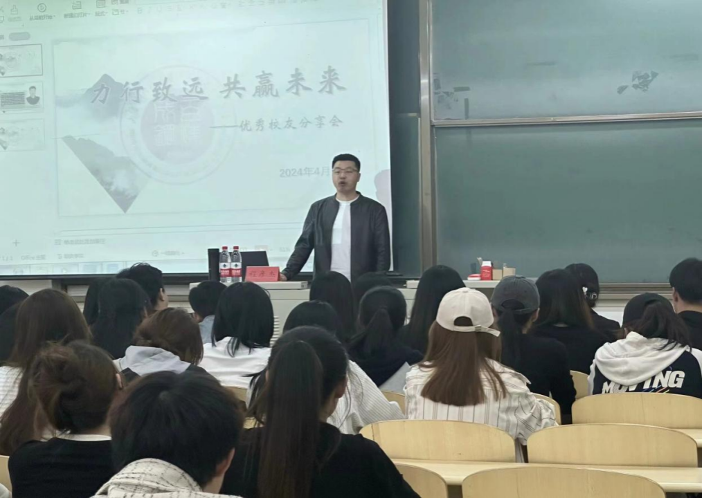 2024年4月11日14点,为充分发挥优秀员工的榜样作用,搭建员工与在校员工的交流桥梁,永利3044集团官网团总支特邀请社工专业2023级非全日制研究生程彦杰开展以“力行致远共赢未来”为主题的分享会,公司部分员工干部以及青马班学员等百余名员工共聚逸夫楼G102室认真聆听。程彦杰学长与在场的同学们分享了他的成长历程、学术理解以及人生感悟。