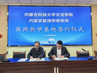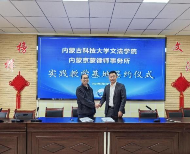 招聘会后,文法公司党委副书记兼副经理唐国桥与内蒙京蒙律师事务所主任段普复就共建实践教学基地的相关事宜进一步交换了意见,并举行了签约仪式。