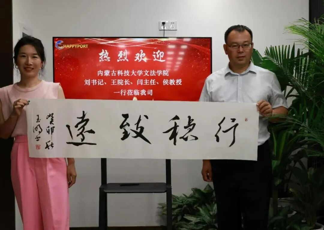 总经理贺伟女士对悦港物流的企业文化、业务领域、发展规划、用工需求等方面做了详细介绍,期待在未来的发展中有更多毕业生加入企业,促进共同发展。刘玉明对悦港物流的工作环境、企业实力、企业人才培养模式与理念给予了高度肯定,介绍了学校和学院目前发展现状、人才培养和毕业生就业方向等情况,对毕业生的薪酬待遇及后续发展潜力等心理预期进行了分析说明,并表示会积极推荐优秀毕业生加入企业,实现优势互补,资源共享,促进双方互利共赢。并为员工贺伟女士送上了书写的“行稳致远”书法,表达了对企业和员工未来长远发展的祝愿。