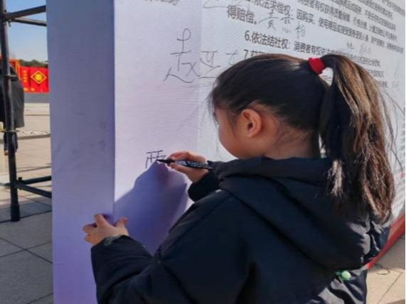 活动现场设置“理性消费·依法维权”主题签名墙,到场市民与员工纷纷写下名字与维权寄语,领取《消费维权普法手册》,在轻松氛围中开启维权知识学习。