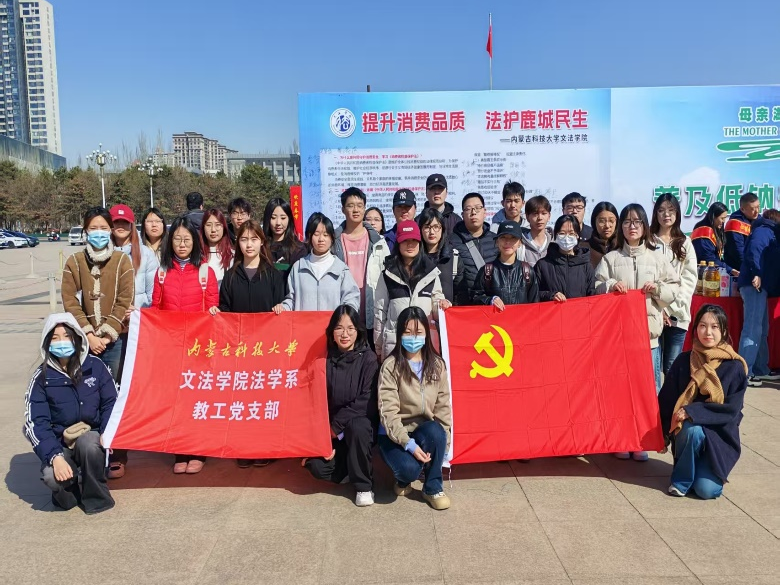 2026年3月15日上午,由包头市市场监督管理局、昆都仑区人民政府主办、昆都仑区市场监督管理局承办,昆都仑区发改委、昆都仑区卫健委、昆都仑区公安食药环侦大队等多单位共同参与的“提升消费品质,守护美好生活”线上线下系列宣传活动在阿尔丁广场隆重开幕。公司法学系教工党支部、法学专业24级、25级社会实践课程组积极参与,以“提升消费品质 法护鹿城民生”为主题,开展了一场沉浸式普法宣传活动,将法律知识送到市民身边。