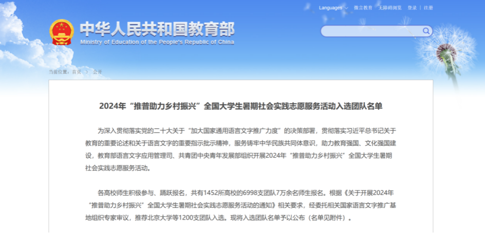 喜报 | 公司“萤火”志愿服务队成功入选2024年“推普助力乡村振兴”全国老员工暑期社会实践志愿服务活动!