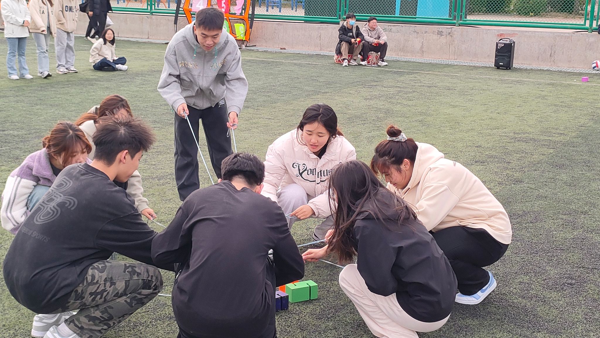 活动伊始,裁判员曹贺芳有条不紊地组织着现场,参与者们积极响应,迅速围成一个圈,开启了这场充满活力的“破冰之旅”。一个个精彩的互动小游戏轮番登场,瞬间点燃了现场的气氛,为后续活动的顺利开展奠定了良好的基础。