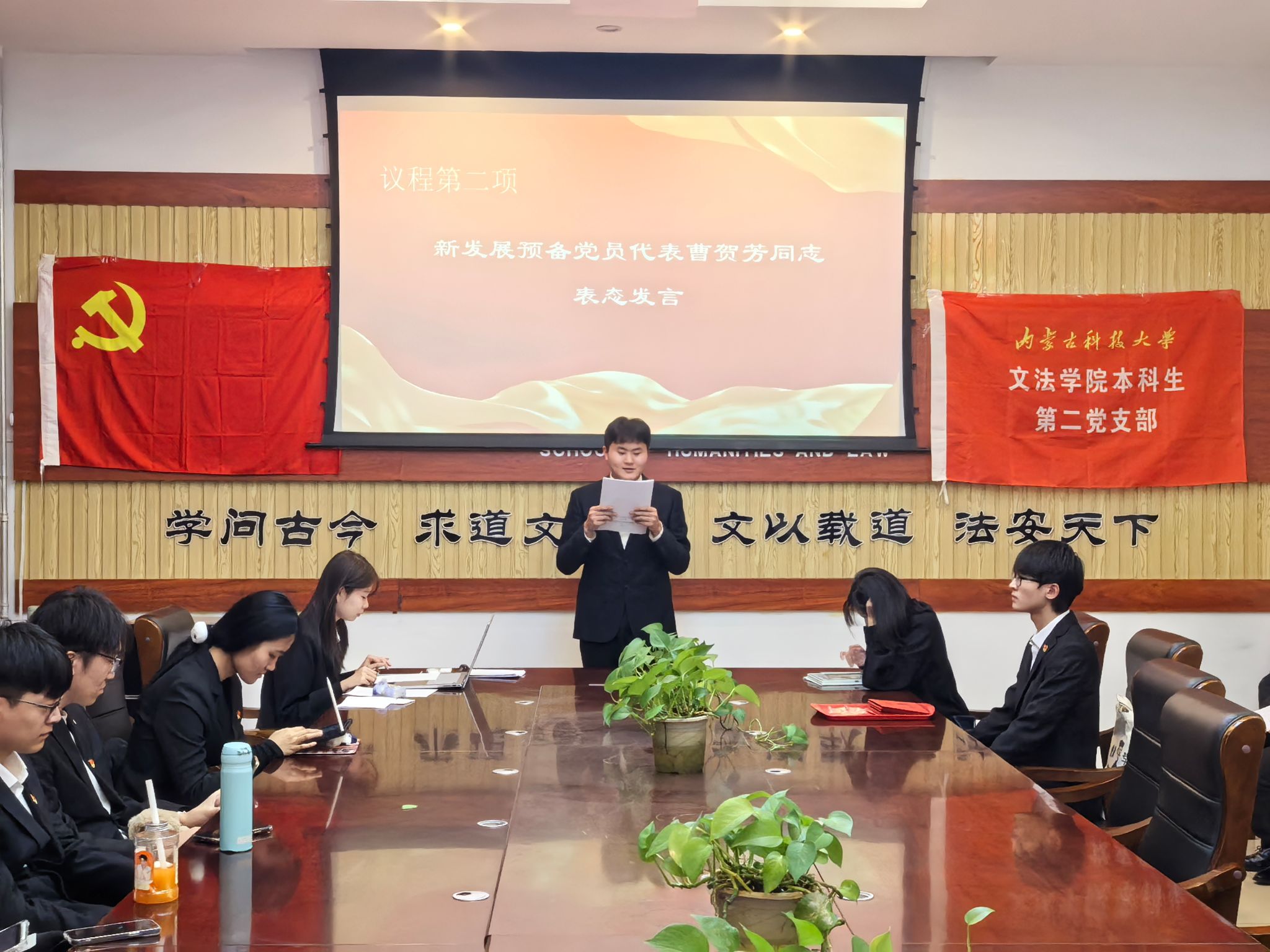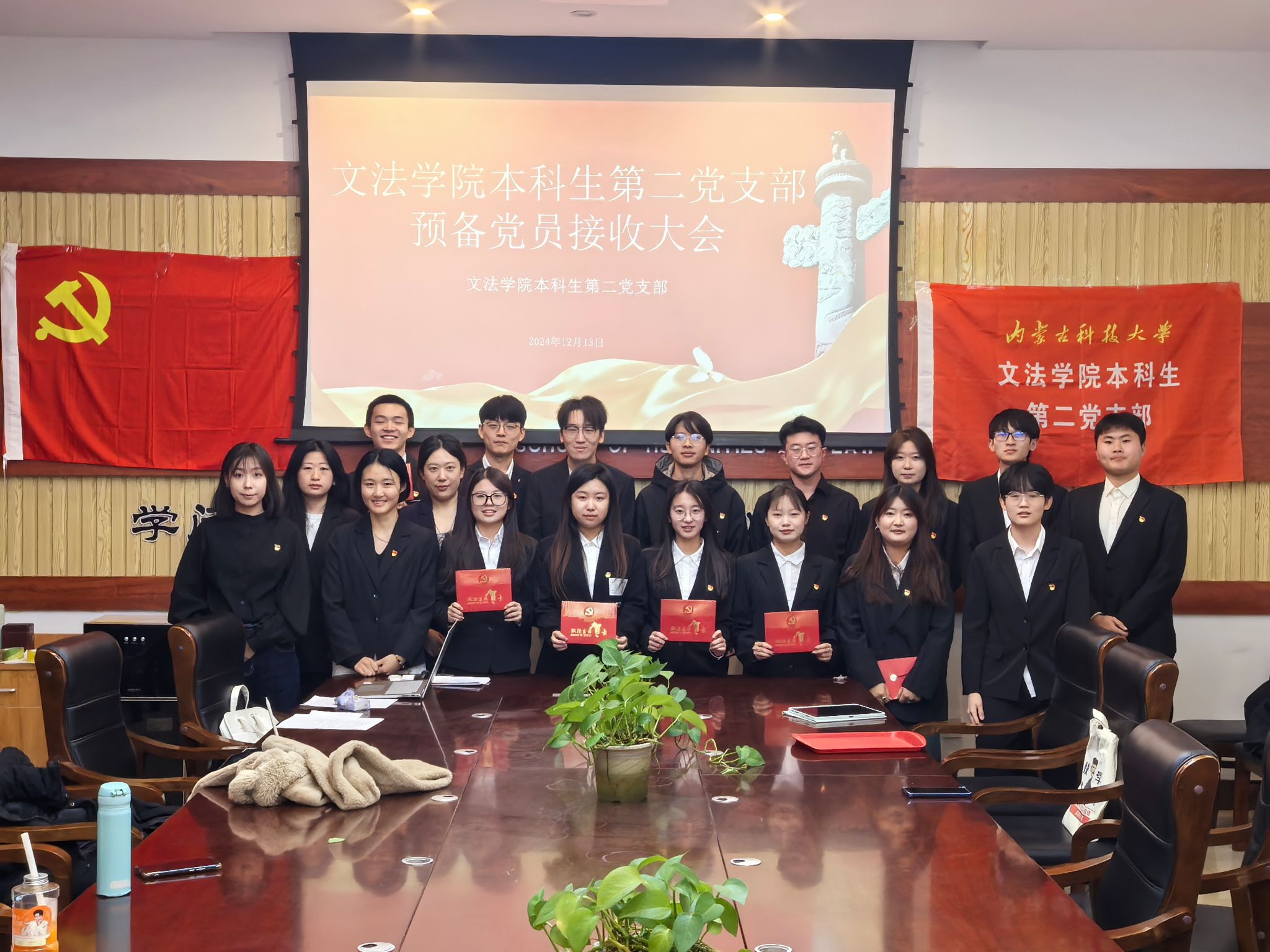 2024年12月13日晚18:30,永利3044集团官网本科生第二党支部在明德楼A307召开预备党员接收大会。