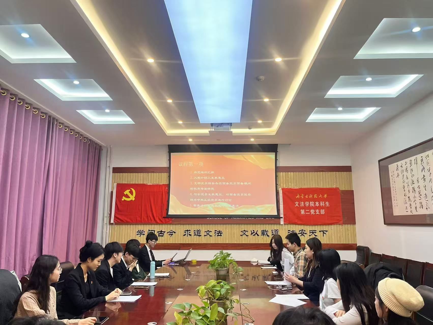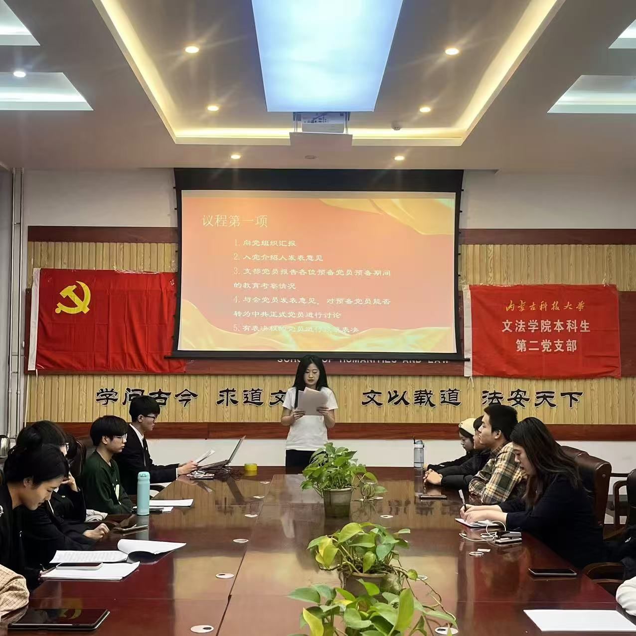 大会由党支部书记主持,全体党员参加。会议开始,全体党员起立奏唱国歌。党支部书记介绍会议流程与到会情况。