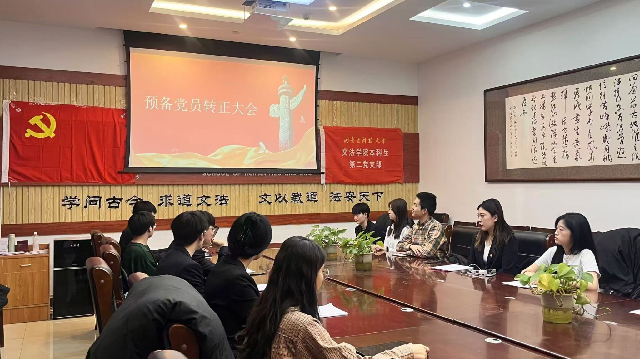 2024年12月23日晚18.30,永利3044集团官网本科生第二党支部在明德楼A307召开预备党员转正大会。