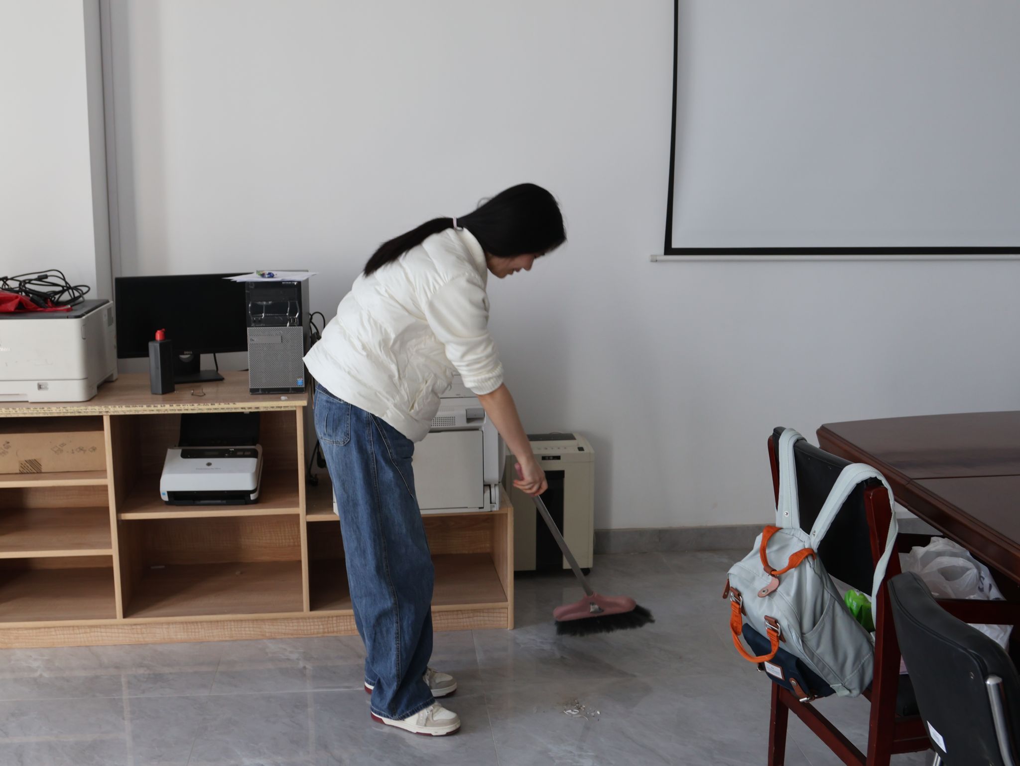 活动伊始,正值学院搬迁至新楼宇之际,支部成员们率先投身后勤服务实践,助力新楼宇环境建设。活动中,支部成员们分工协作、配合默契,对搬迁物资进行精细化清点与分类规整,主动协助学院教师搬运办公物资、整理档案文件;对会议室、活动室等公共空间进行全覆盖环境整治,规范陈列桌椅设施,清除卫生死角。经过辛勤劳动,公共区域面貌焕然一新。支部成员们用实际行动践行了“吃苦在前、享受在后”的雷锋精神。