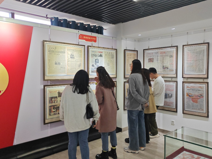 首先,党支部所有成员在工作人员的带领下共同观看了铸牢中华民族共同体意识的微党课,了解了包头市发展历程中,不同领域的各民族同胞齐心协力共奋斗的先进事迹。随后在讲解员的带领下支部成员共同参观了民族团结进步老报刊展览。本次展览包括自建国以来有关包头市的重要时间节点事件的报导,同时也展现了自十八大以后,党中央对于内蒙古包头市的重点关怀与殷切期望。通过参观支部成员不仅深入了解了包头与包钢的成长历史,还通过不同时期重要事件的报道深刻领悟了党中央对于内蒙古和包头的重视与期待。同时,展览也反映出各民族同胞在中国共产党的带领下团结奋斗,勇毅前行的辉煌历程。