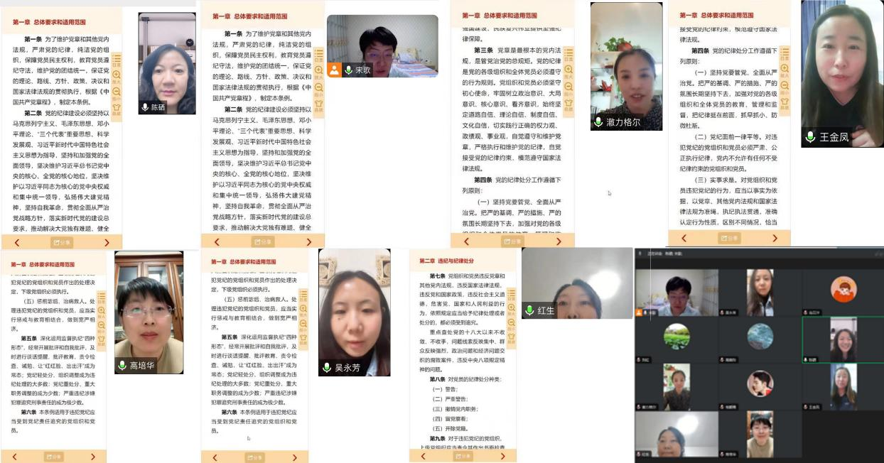 为切实落实上级党委相关工作部署,加强党员同志的纪律观念,增强作风意识,根据中央、自治区关于开展党纪学习教育的要求,及公司党委有关会议精神,中文专业教工党支部于4月17日召开线上党纪学习教育工作部署会,支部全体党员参加本次会议。