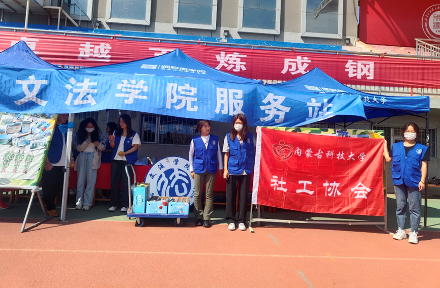 社工协会成员课余时间等候在永利3044集团官网军训服务站,在休息时间为参加军训的永利3044集团官网大一新生送水加油。一瓶水、一句问候,表达着社工协会对同学们的浓浓关心。