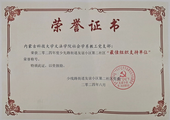 在持续开展学习《中国共产党纪律处分条例》期间,主题党日活动以“礼赞七一颂党恩”为主题,社会学系教工党支部党员和员工、社区“两委”成员及老党员齐聚友谊第二社区文化广场,开展致敬老党员、吟诵红色诗歌、唱响红色歌曲等活动。期间,社会学系教工党支部与少先路街道友谊小区第二社区党支部精诚合作,并商定实现资源整合、阵地整合、队伍整合、服务整合,更好发挥党建引领专业建设和社区服务。少先路街道友谊小区第二社区党支部向社会学系教工党支部颁发了“最佳组织支支持单位”证书。