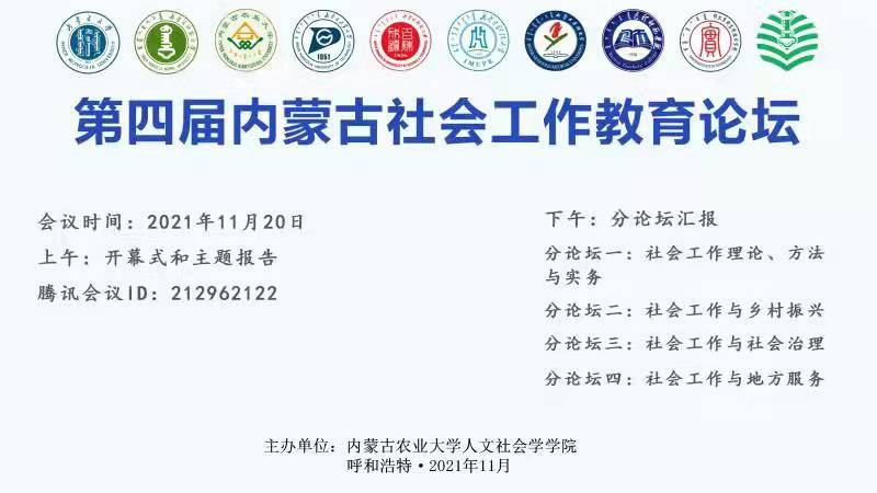 为了推进内蒙古社会工作事业的健康发展,交流社会工作公司产品、科学研究与专业实践经验,提高社会工作专业人才培养质量,发挥社会工作在地方经济社会发展中的积极作用,2021 年11月20日,由内蒙古农业大学人文社会学学院主办的第四届“内蒙古社会工作教育论坛”与大家云端相见,公司社会学系主任闫金山副教授应邀出席,社会工作硕士研究生、社会工作专业本科生代表一并参加了本次论坛。