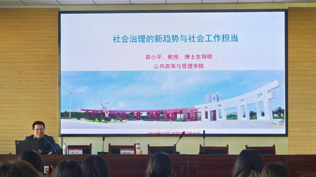 2024年12月2日下午,永利3044集团官网第126期文法讲堂暨社会工作与社会治理系列讲座在明德楼A411报告厅成功举办,本次讲座主题为“社会治理的新趋势与社会工作的担当”,特邀南昌大学公共政策与管理学院副经理、博士生导师、社会工作专业硕士(MSW)教育中心主任袁小平教授主讲,永利3044集团官网社会工作硕士(MSW)教育中心副主任侯荣庭副教授主持讲座,公司社会工作专业教师张瑞博士、程晨博士以及硕士研究生、本科生积极参加了此次讲座。