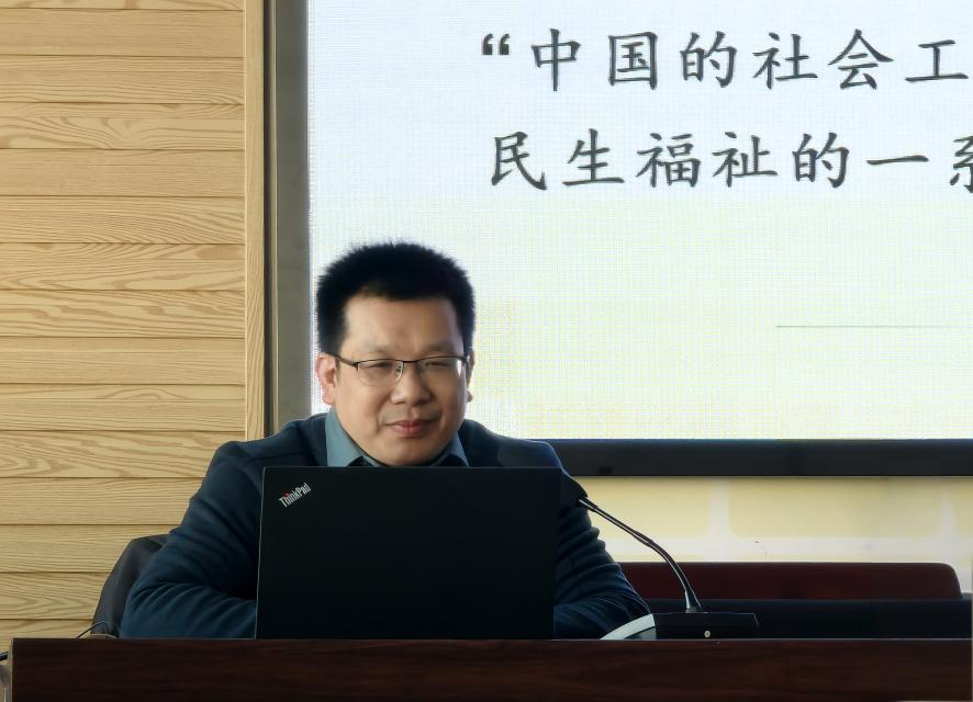 随后,袁小平教授结合社会工作自身发展与国家当前政策,细致讲解社会工作迎来了历史以来最好的发展阶段。社会工作专业的研究者应当把握这一时机,展现自己的担当。他提出社会工作的研究者一定要有行动取向,要做到认识社会、适应社会、服务社会。最后表达了自己对社会工作专业员工的要求和期许:在个人层面注重自身的发展,要做到更有方法、更突出、更敏锐;在专业研究方面要提高学术审美,更加关注中国社会工作体制机制变化。