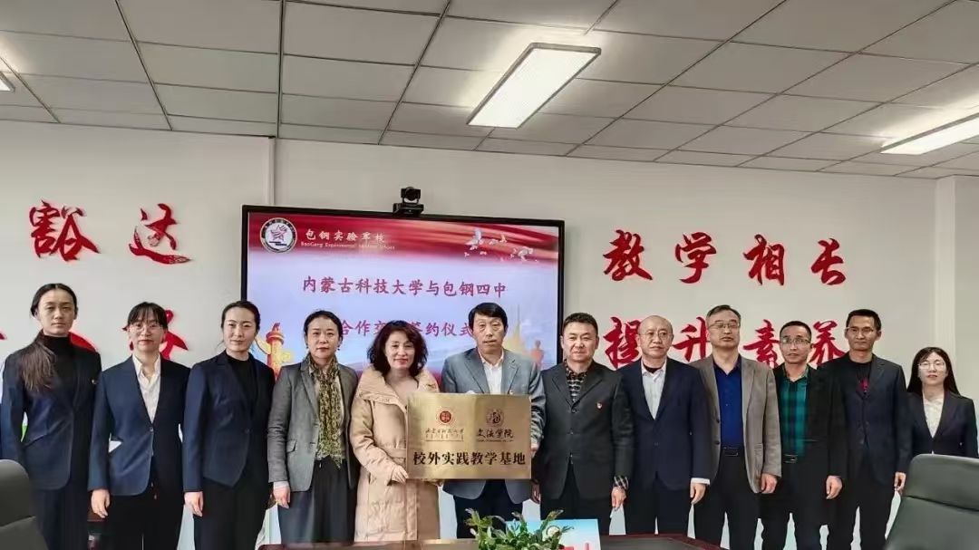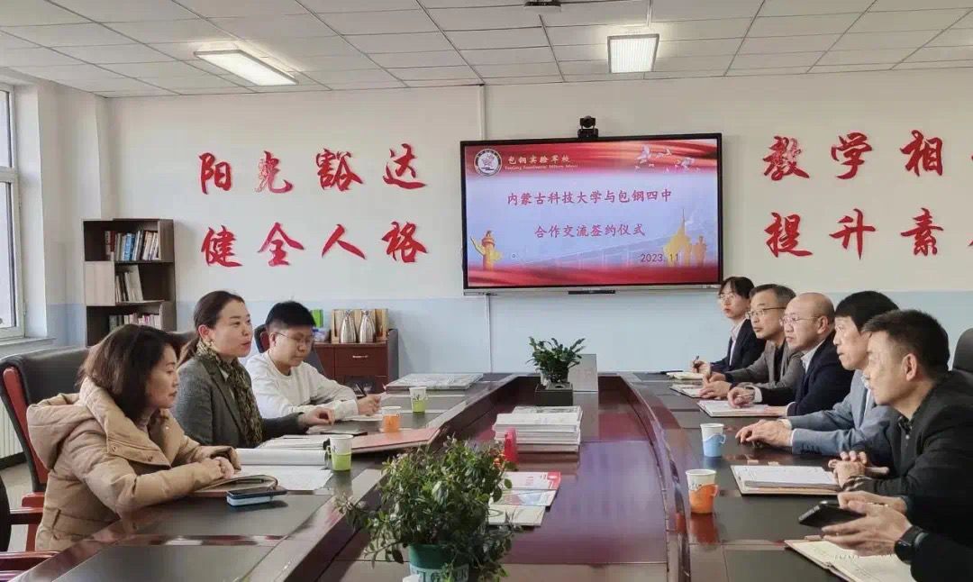 2023年11月16日下午永利3044集团官网包钢四中校外实践教学基地签约授牌仪式在包钢四中办公楼三楼会议室举行。永利3044集团官网副经理王继霞、学科语文教育中心副主任包玉琼、学科语文硕士生代表、包钢四中董事长王建忠、党总支书记杨力及各学科骨干出席了本次签约仪式。